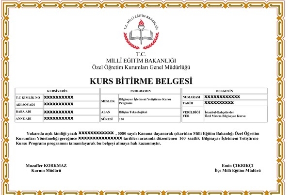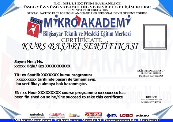 MEB ONAYLI (E-Devlette Gözüken) SERTİFİKA